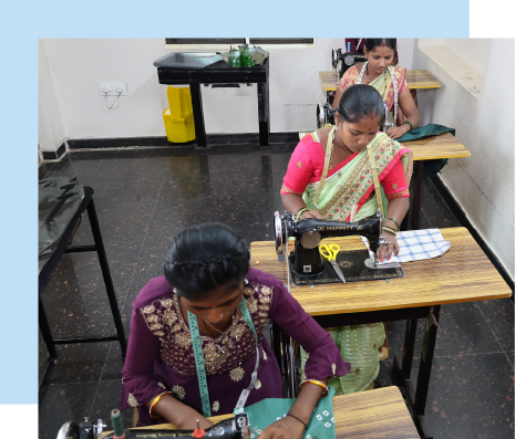 The 3 months program encompasses, basic sewing techniques, hand embroidery, pattern making, basic garment construction work, and patchwork and quilting. They also learn different cutting patterns for Uniforms, Sarees, Blouses, Churidars, Pants, Frocks, Print Cutting, and Fittings.